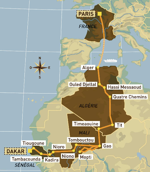 Дакар маршрут на карте