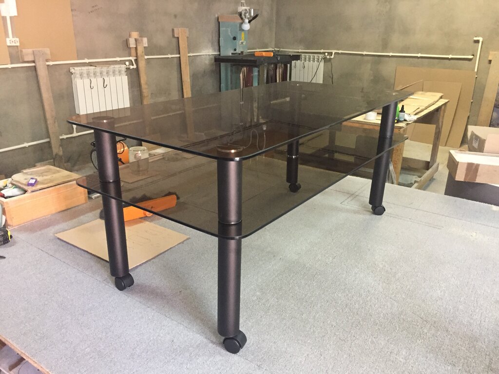 Купить с доставкой в интернет магазине Дамиан-М Москва подставки и столы состоящие из кованного основания и стеклянной столешницы