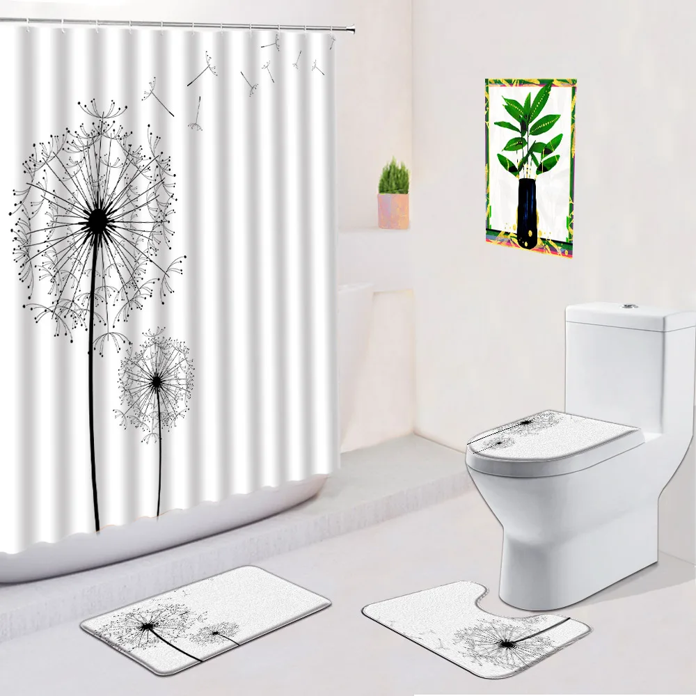Dandelion Shower Curtain Bath Mat Set Plant Flowers Flora Simple Decor Anti Slip Rug Carpet Tiolet Cover Bathroom Accessory Set - Купить с бесплатной доставкой