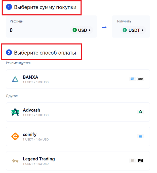 Данные для пополнения