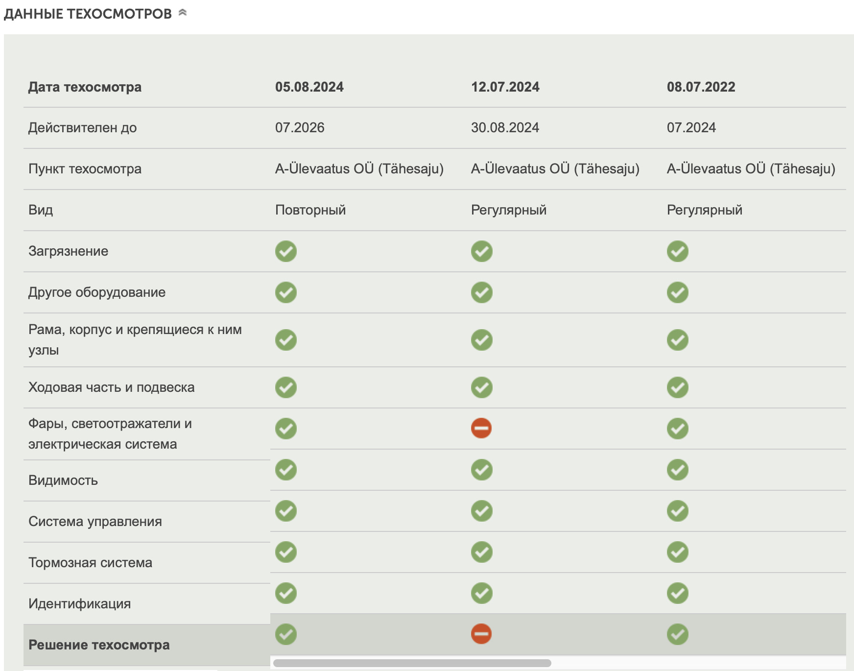 Данные техосмотра автомобиля