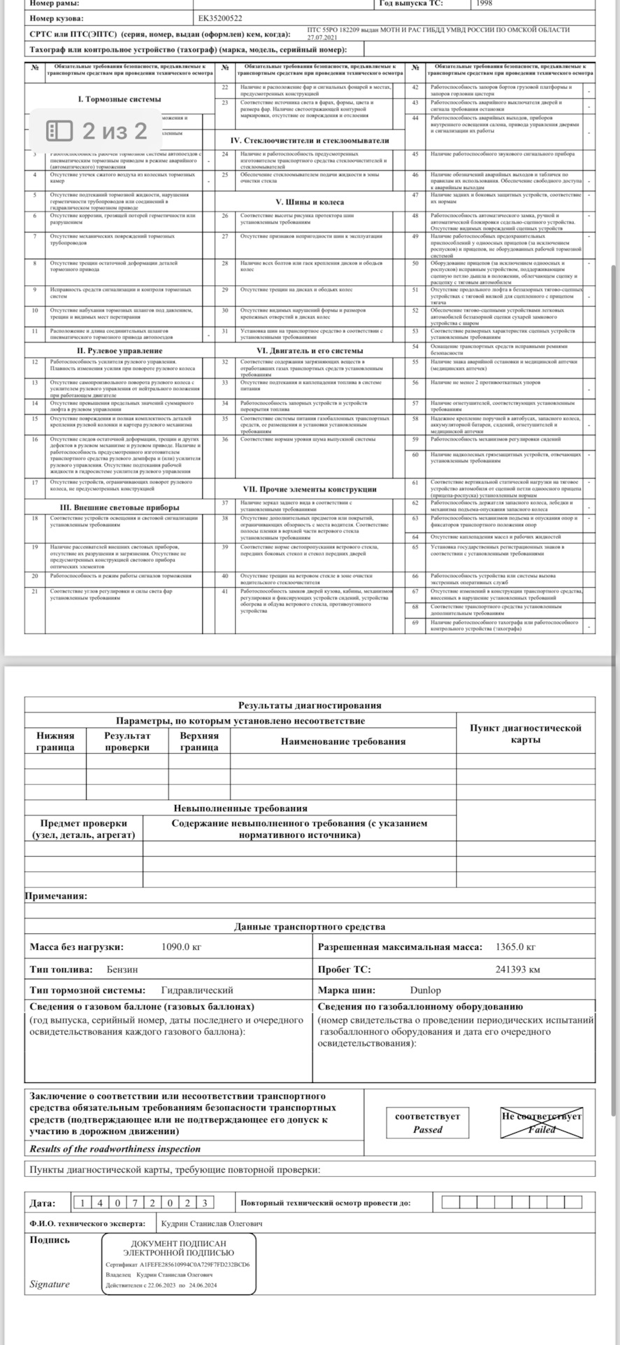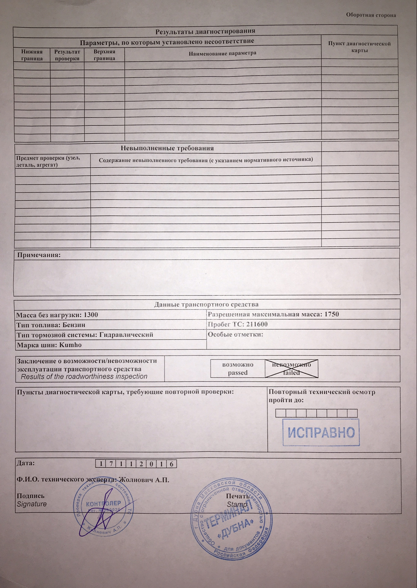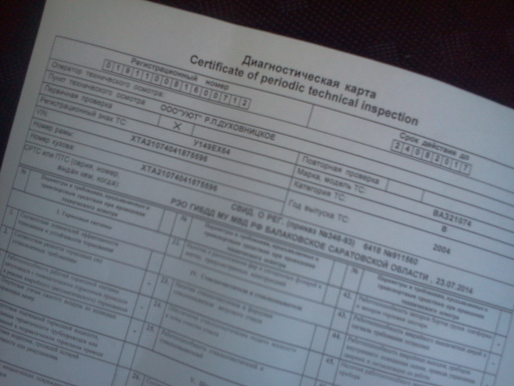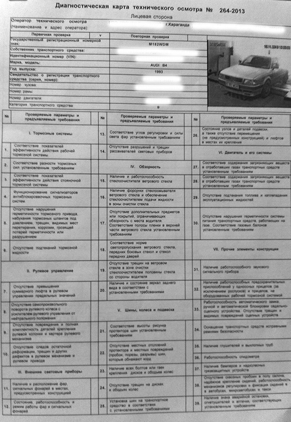 Данные техосмотра автомобиля 114 фотографий