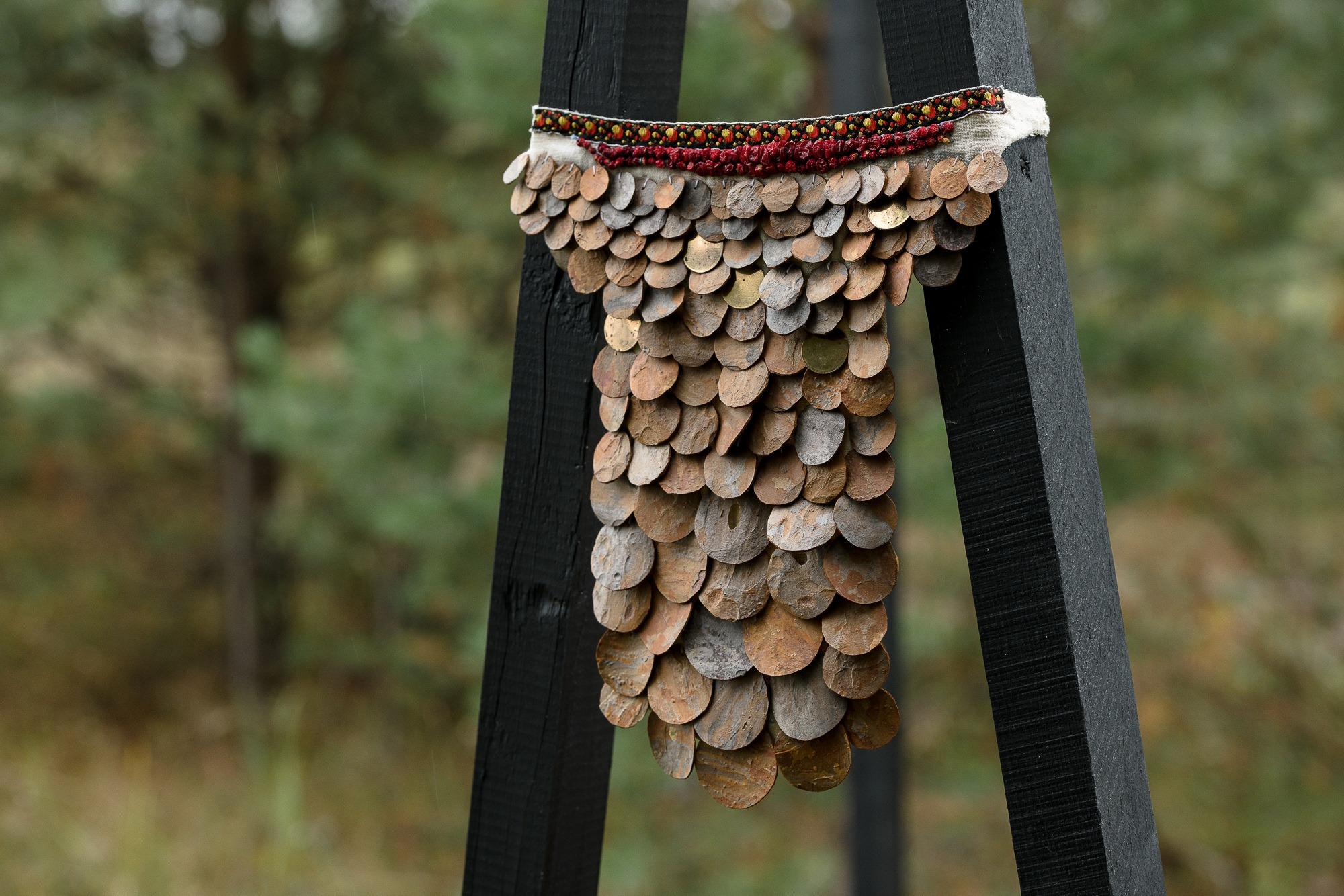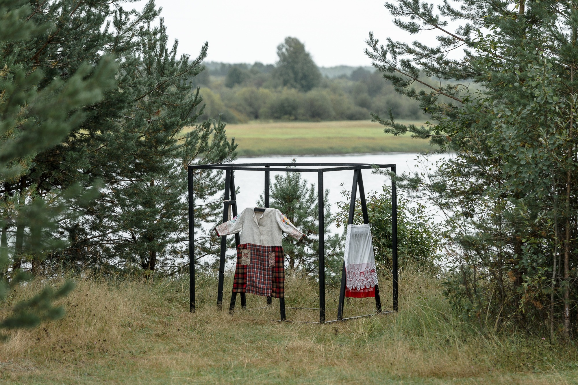Many of these words, as well as muchichyny (to suffer), muchitny (to torment), pytaytöm (torture), have forever been part of the biographies of the Komi intelligentsia. The artist’s installation demonstrates the change of language through textiles and the transformation of costume: for example, a camp robe sewn from elements of national clothing and partly created from homespun fabric by an heiress of prisoners, turns into a frightening image of how camp life destroys national identity through universalizing clothing. And a necklace created from materials found in Adzerom is a disturbing fantasy of how it is possible to maintain national belonging in a situation of extremely limited resources in the context of camp life. In the overcrowded camp barracks, where life was full of need and violence, ethnicity remained the most important distinction that defined the rest. Solidarity was structured precisely through ethnicity: only it helped to make sense of human relationships.