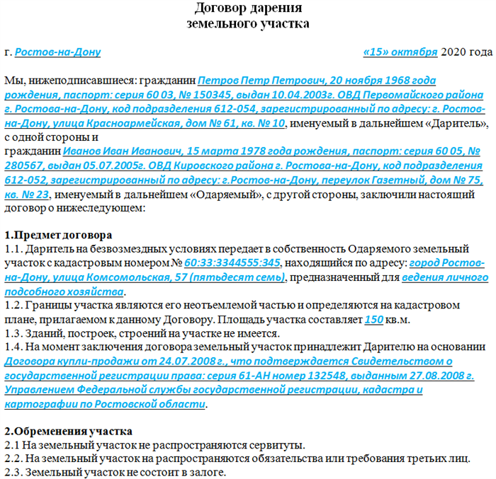 Дарение участка в снт