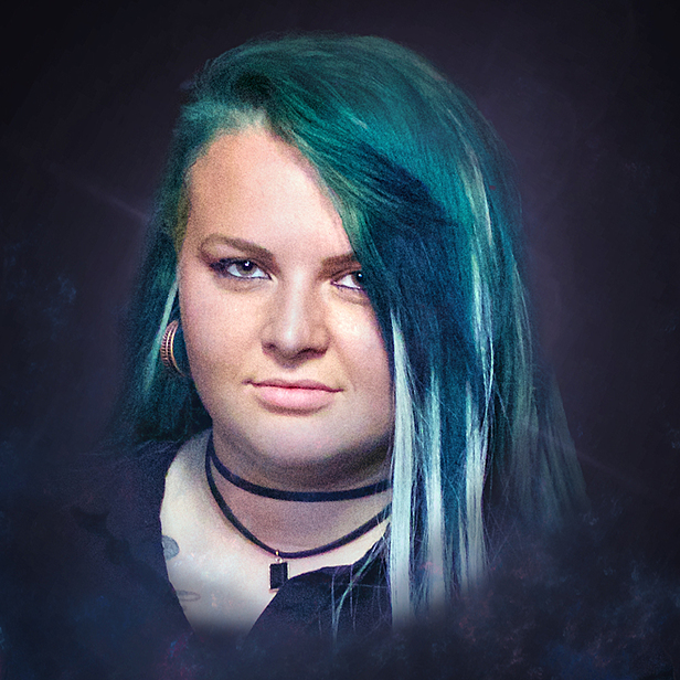 Early DK1 portrait, in which she wields a hammer