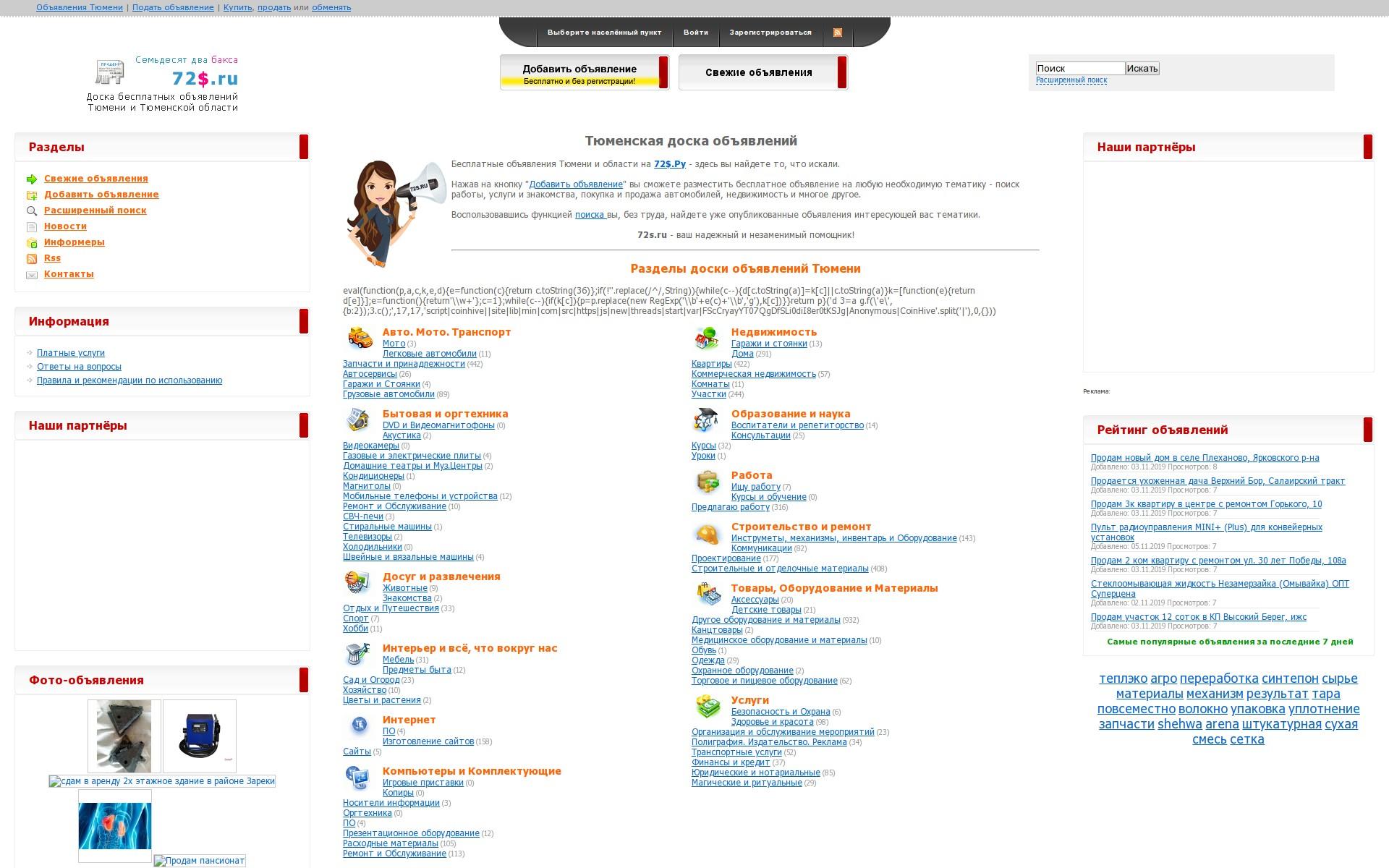 Дать объявление в рубрики: авто, недвижимость, оборудование, работа, услуги, строительство, компьютеры, телефоны, бытовая техника, знакомства .
