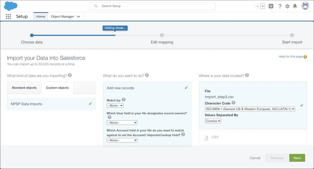 Data import wizard