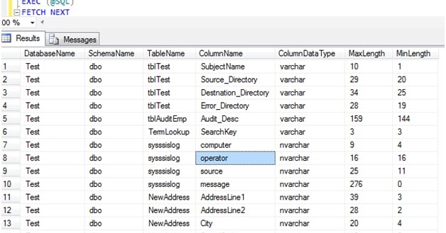 Data length sql