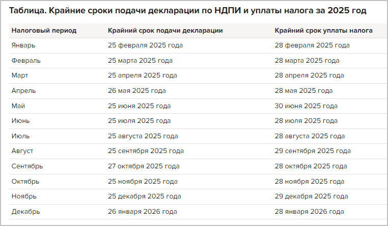 Дата сдачи декларации по налогу