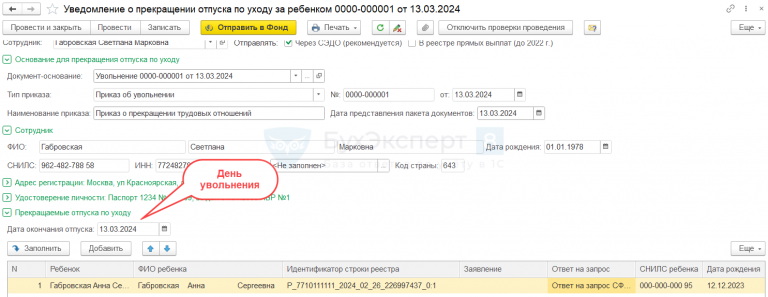 Дата увольнения в 1с зуп