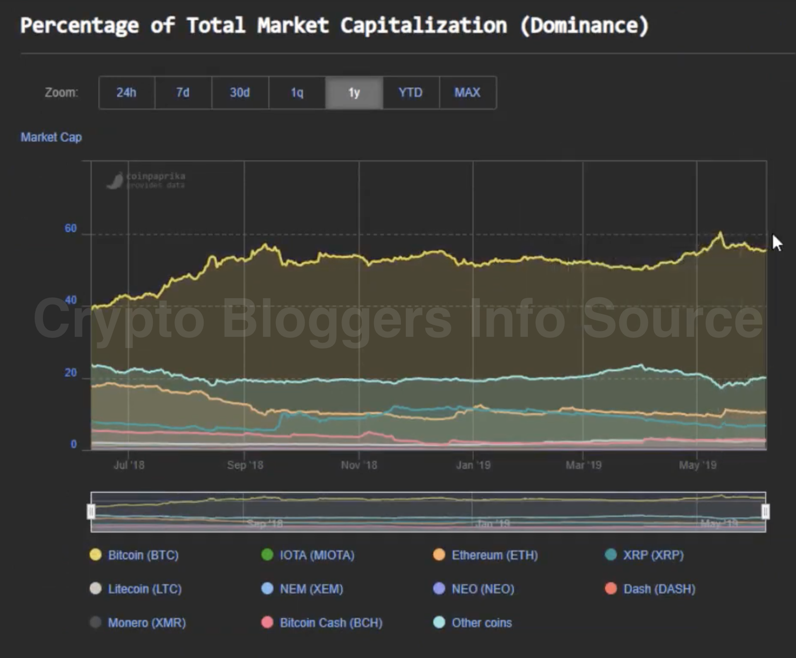 Да, пара недель повышения цен сейчас обнулилась, но это не трагично, 2019 показывает очень хорошие результаты. Тем не менее, на рынке ещё не было нормальной коррекции. Доминация BTC медленно падает, но я думаю, что входить в крупные монеты вроде XRP и ETH ещё рано.