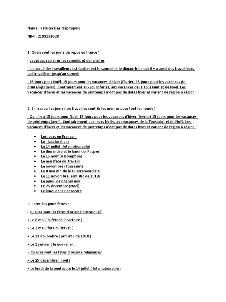 Date Vacances Noel