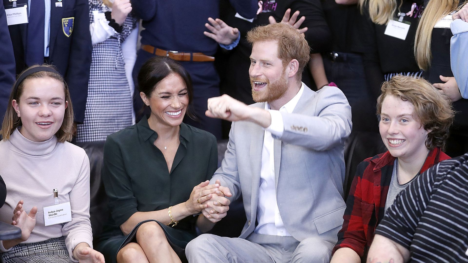 Tattooluder Karmen Karma beim Bürofick mit Kollegen