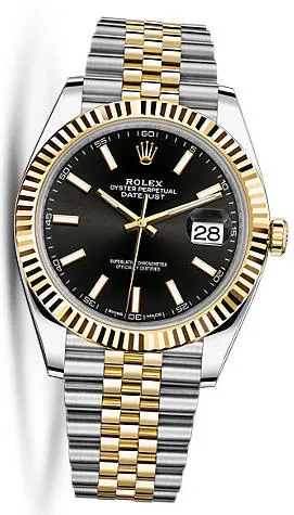 Datejust 41 Oyster, 41 mm, Oystersteel and yellow gold . This Oyster Perpetual Datejust 41 in Oystersteel and yellow gold features a champagne-colour dial and a Jubilee bracelet . The light reflections on the case sides and lugs highlight the elegant profile of the 41 mm Oyster case, which is fitted with a fluted bezel .