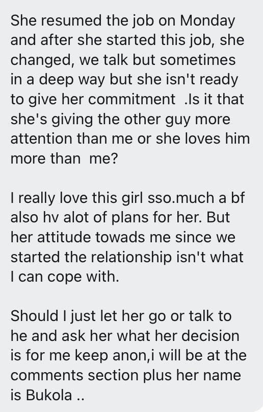 Successful, beautiful, funny, intelligent and classy . And most importantly she likes you . She laughs at your jokes, she always respond to your texts and she's consistently delighted to take you up on any opportunity to hang out together . But one day in conversation she tells you that she's also seeing another guy .