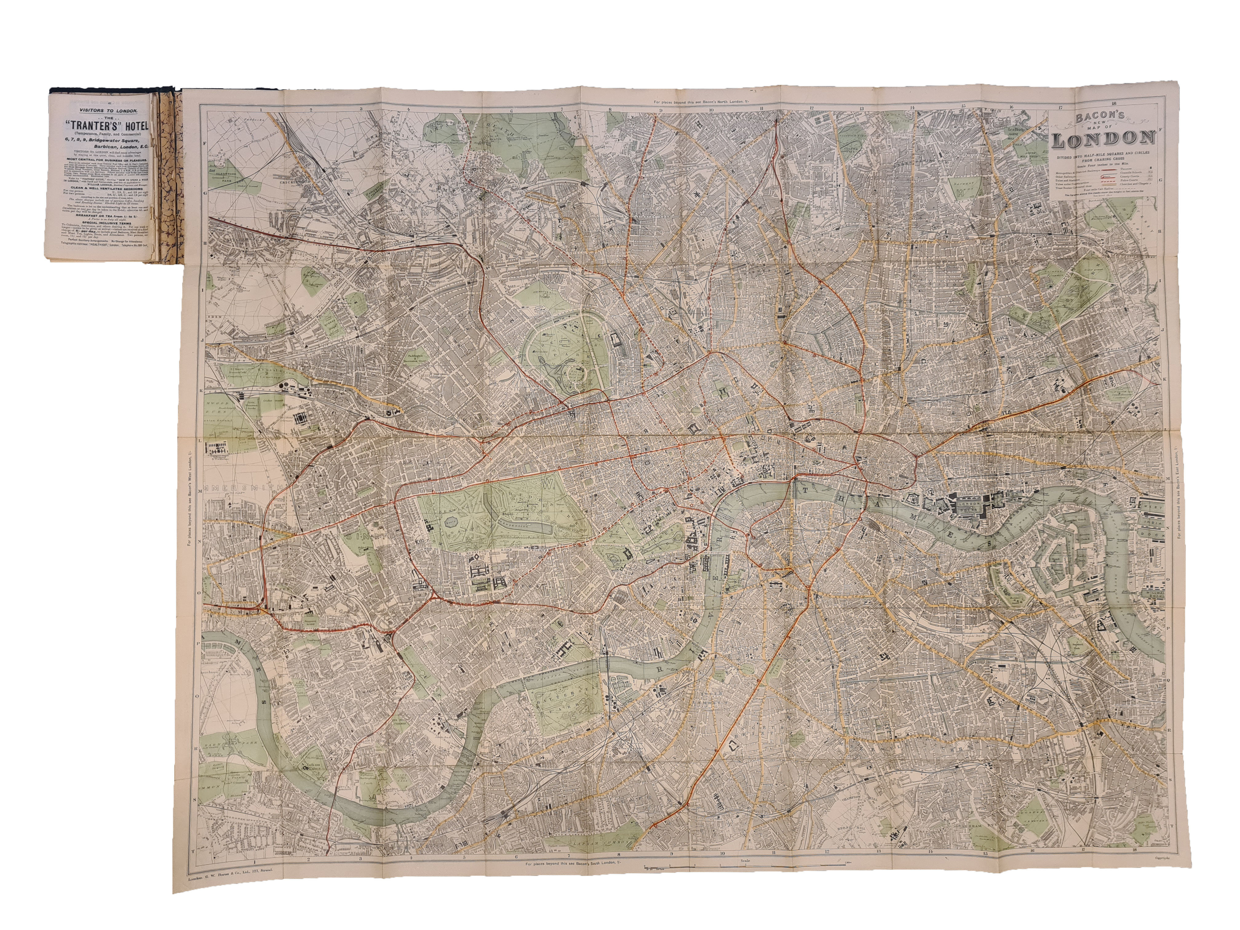 Bacon ; GF Cruchley; Gall & Inglis; Geographia; Geographers Map Company; J&C Walker; Bacon & Co . Addresses: 1862-67 48 Paternoster Row 1866 73 Pentonville Road 1868 337 Strand 1870-1919 127 Strand 1919-22 Norwich Street, London . Business: Bacon & Co took over the business of James Wyld in 1893 .