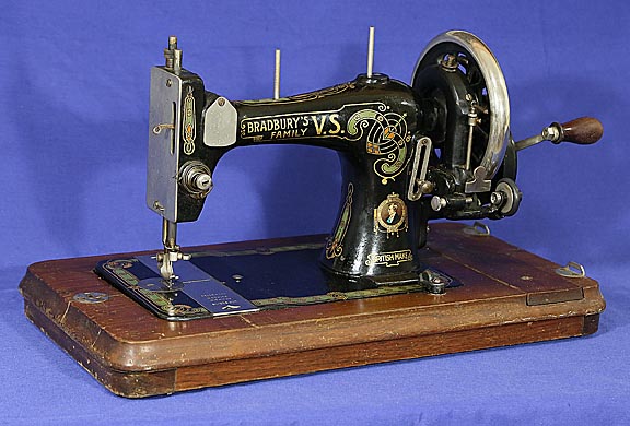 Bradbury's final sewing machine was the Bradbury VS or Vibrating Shuttle sewing machine . The Bradbury machines became famous for their reliability and endurance and won over 30 gold medals at exhibitions all around the world plus loads of silver and bronze . Bradbury Sewing Machine , The Wellington sewing machine . A beautiful Bradbury Wellington sewing machine circa 1890