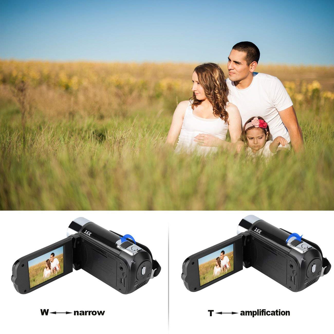The camcorder is design for amateurs, not for professionals .(Auto focus is not supported, optical zoom is not supported) 2 . The camcorder only supports LED video sight, as a light supplement(Not Include), and the camcorder not support the external microphone . 3 . Please format the SD card before use the camcorder(SD card not included)