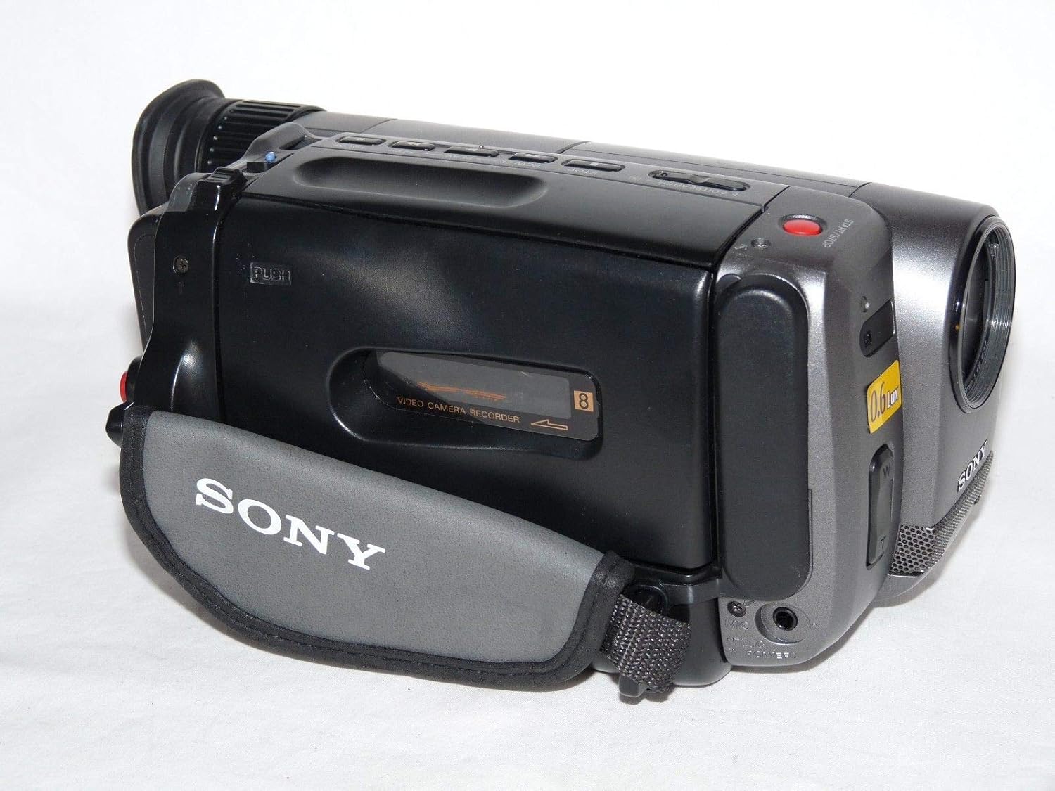 A camcorder is an electronic device originally combining a video camera and a videocassette recorder . It is typically equipped with an articulating screen mounted on the left side, a belt to facilitate holding on the right side, rear-facing hot-swappable battery, hot-swappable recording media, and an internally contained quiet optical zoom lens . The earliest camcorders were tape-based, recording analog signals onto videotape cassettes . In 2006, digital recording became the norm, with tape replac