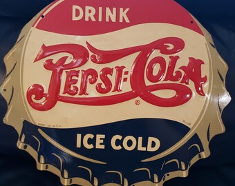 Over ninety different vintage Coca-Cola tin, metal, Enamel and Porcelain signs , including eight different round signs from 12" to the embossed 14" in Diameter signs . There is a Die-cut six pack shaped sign , the vintage Coke glass shaped sign , a super detailed coke bottle die-cut embossed sing and the domed coke bull's eye sign which is also richly embossed .
