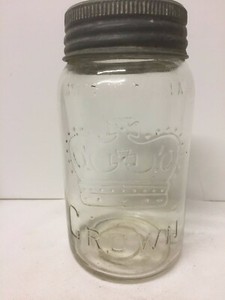 Great for Decorating 1 . Green Crown 1Β½ Quart Jar w/ Zinc band and Crown Insert Glass Lid 2 . 1937 Crown Imperial Pint Jar (Made in Canada) w/ Zinc band & Crown Insert Glass Lid 3 . SKO Queen Wide Mouth Adjustable Square Quart Jar w/Wire Bale and Glass Lid 4 . Perfect Seal Wide Mouth Adjustable Quart Jar w/Wire Bale & Glass Lid 5 .