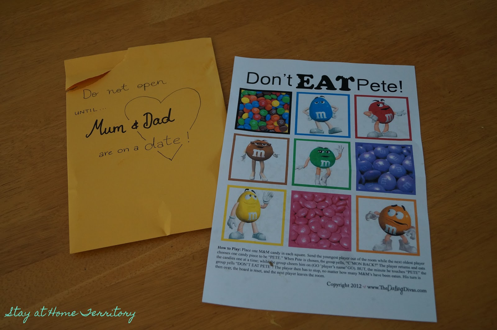 As usual the Divas don't disappoint and they have all the printables you need for this date . All you have to do is print it off so you have it ready and start playing once you put the kids to bed . Bonus: Babysitter in a Bag