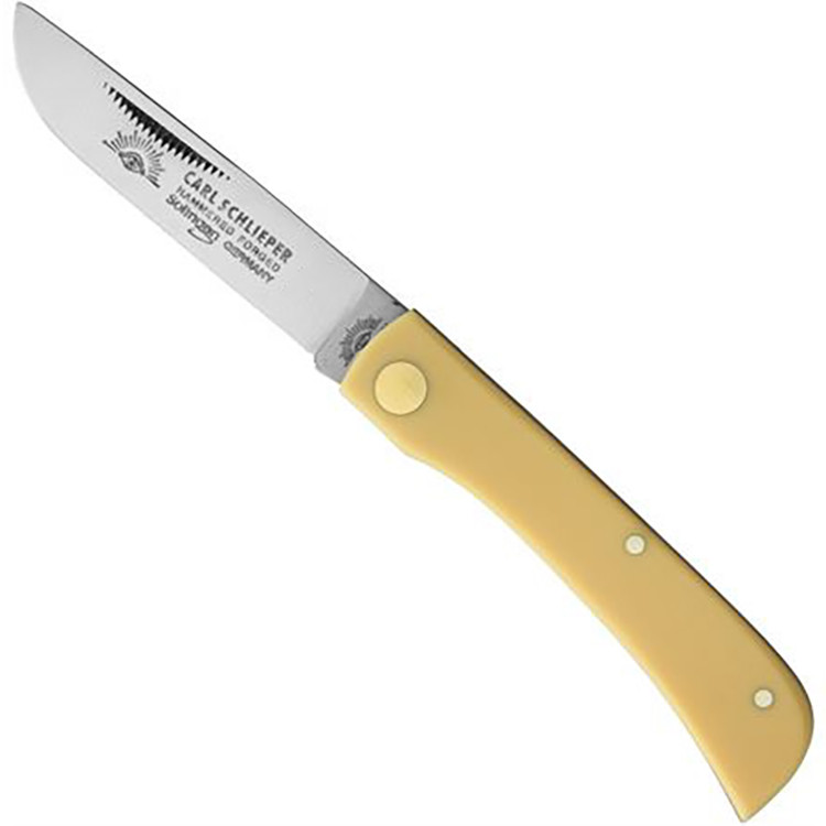Quality . German Eye Brand Large Four-Blade Congress 4" Closed, Yellow Celluloid Handles . $157 .95 $118 .95 . Save 25% . ADD . Note . Quality . German Eye Brand Carl Schlieper Clodbuster Jr . Folding Knife 2 .875" Blade, Black Celluloid Handles . $72 .95 $54 .95 .
