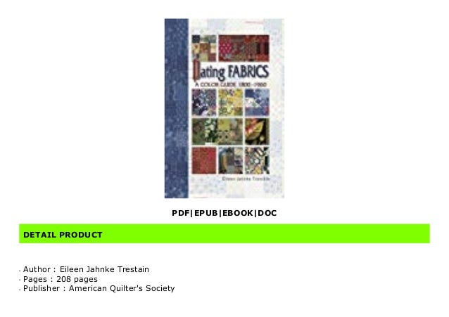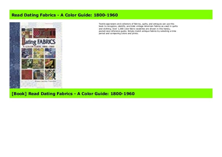 Dating fabrics : a color guide , 1800-1960 User Review - Not Available - Book Verdict . In dating antique quilts, fabric identification takes on paramount importance . This practical handbook compiled . . .