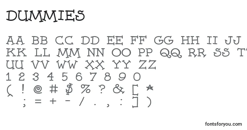 Dummies font This font was posted on 06 May 2015 and is called " Dummies " font . This font is in the regular style . You can find over 79364 other regular fonts on Fontsup . This font also belongs to the fun font category . You can find more fun fonts . You can find more information about this below . If you have any cool fonts for us, log in and share them .