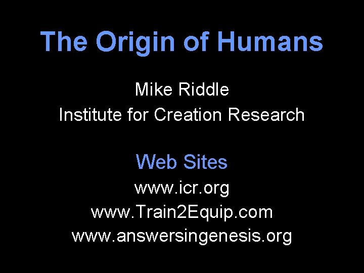 Mike Riddle has put together a brilliant slideshow examining the truths and misnomers of dating methods currently used by scientists eager to propogate their evolutionary agenda . I hope you enjoy Mr . Riddle's slidshow as much as I have . whittumjd .