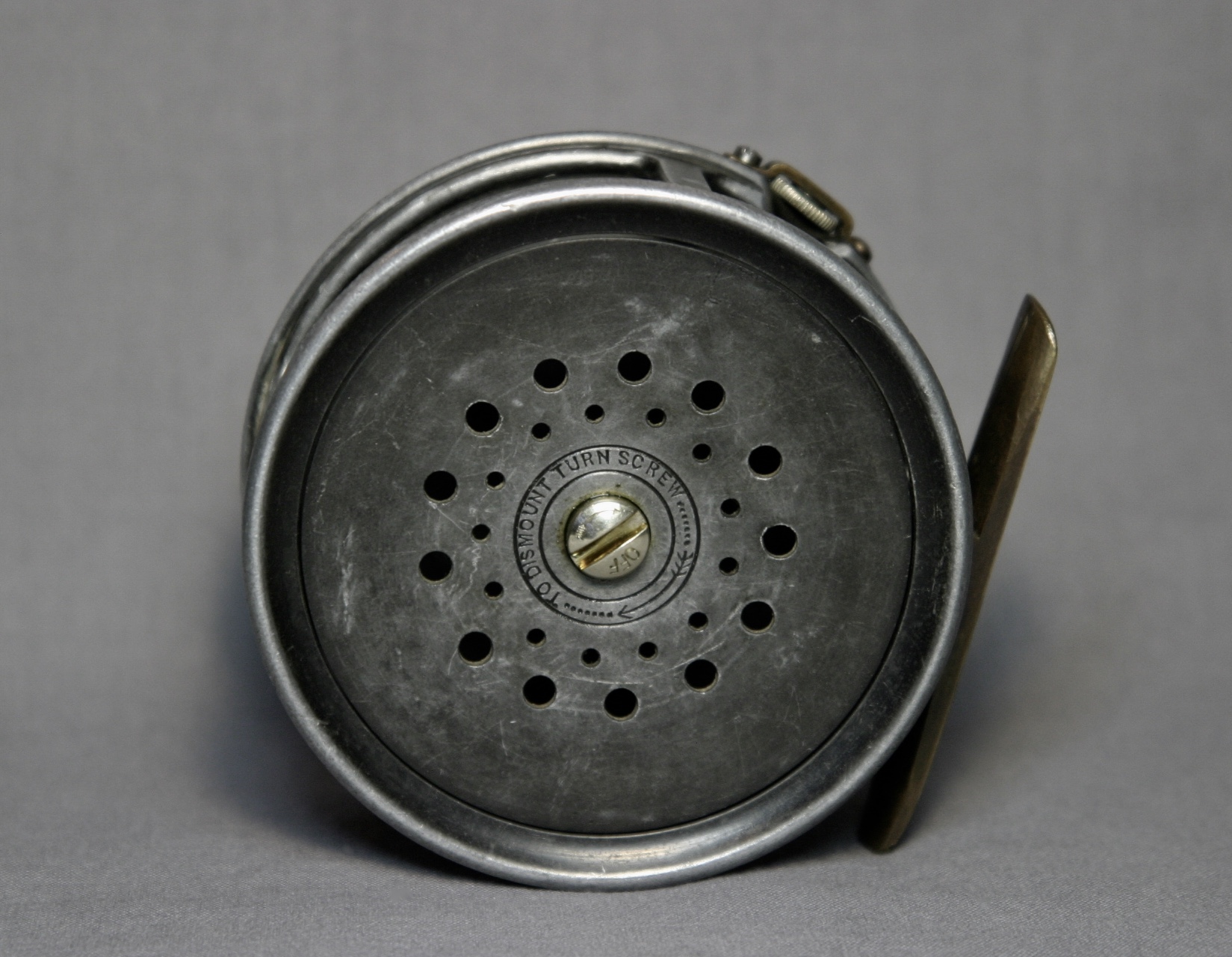It is a Darker colored gray, single screw line guard, and has " Made by Hardy Bros . LTD England" inscribed on the back . The single screw line gaurd units followed the Two Screw line units I have read . Just wondering when they ceased issue of the two screw reels ?