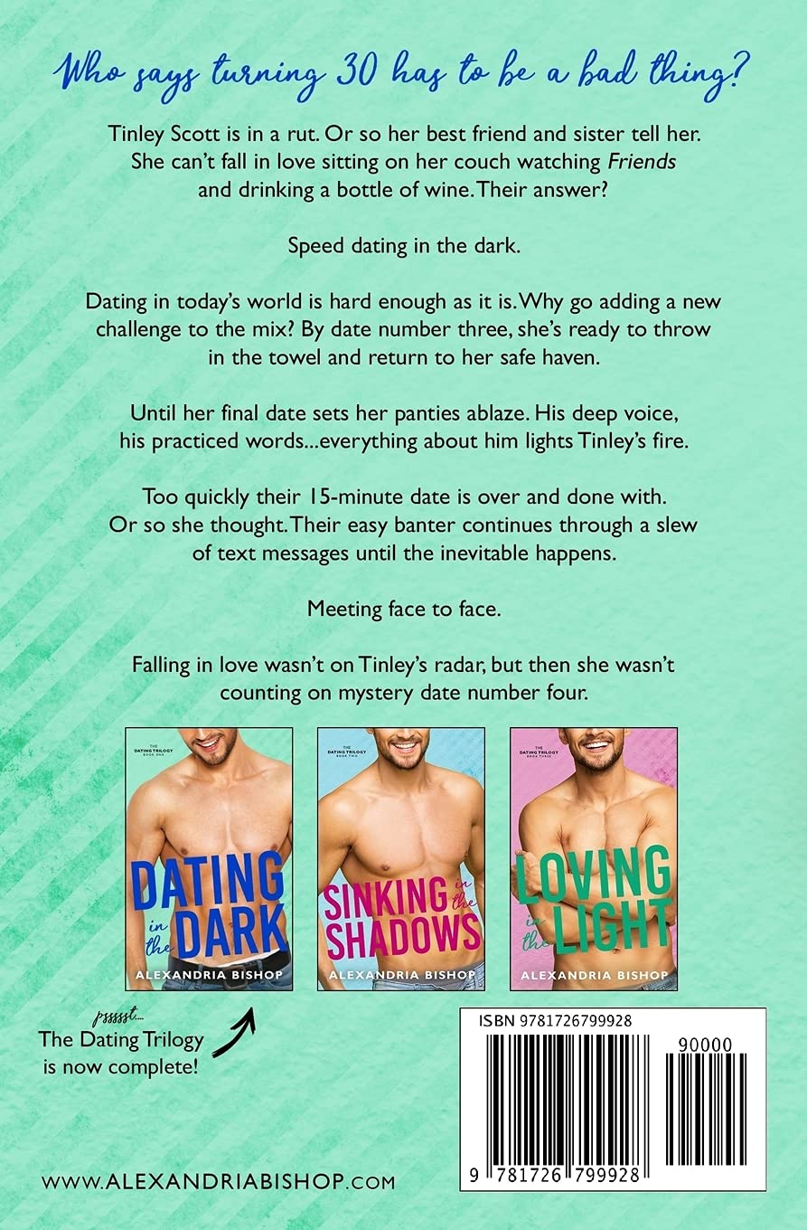 But Dating in the Dark gave her both . Or so she thought . Now with a broken heart and an unexpected surprise she doesn't know if she'll ever find her way back to both again . Sinking in the Shadows is the second book in The Dating Trilogy and should be read after Dating in the Dark . Tinley and Marek's story concludes in Loving in the Light .