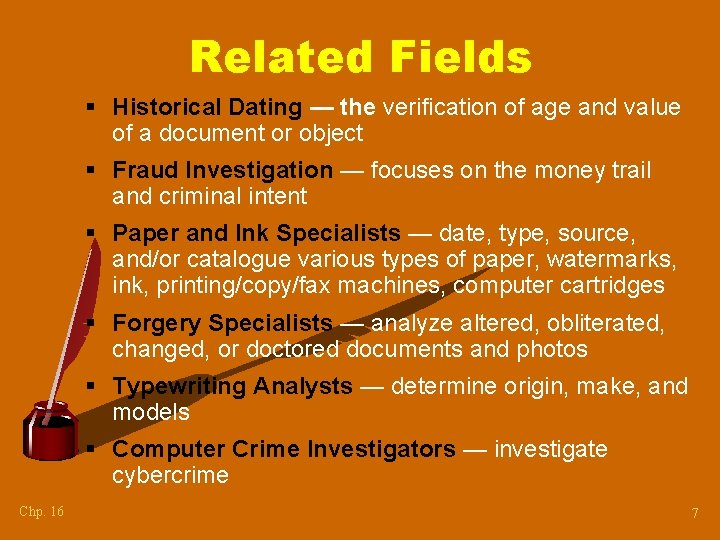 Identification and dating of the fountain pen ink entries . . .