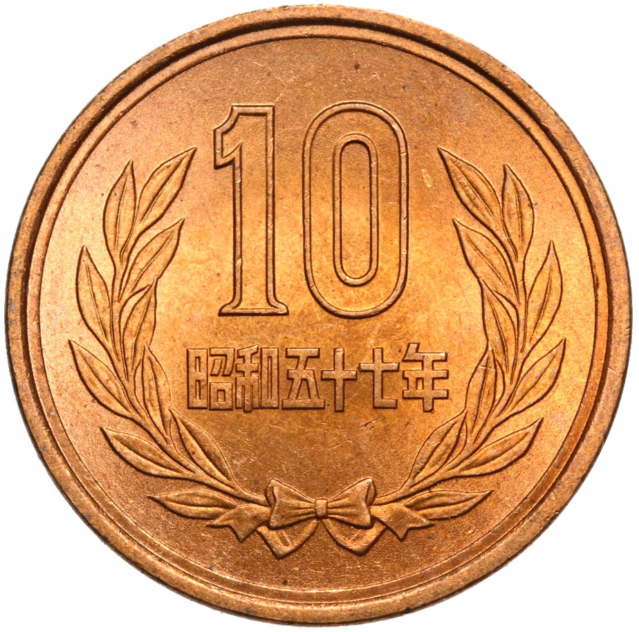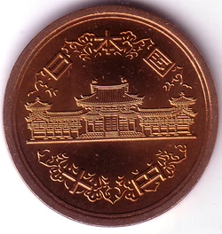 Standard circulation coin Years: 34-64 (1959-1989) Calendar: Japanese - Shōwa era: Value: 10 Yen 10 JPY = 0 .09 USD Currency: Yen (1871-date) Composition: Bronze: Weight: 4 .5 g: Diameter: 23 .5 mm: Thickness: 1 .5 mm: Shape: Round: Orientation: Medal alignment ↑↑ Number: N# 922