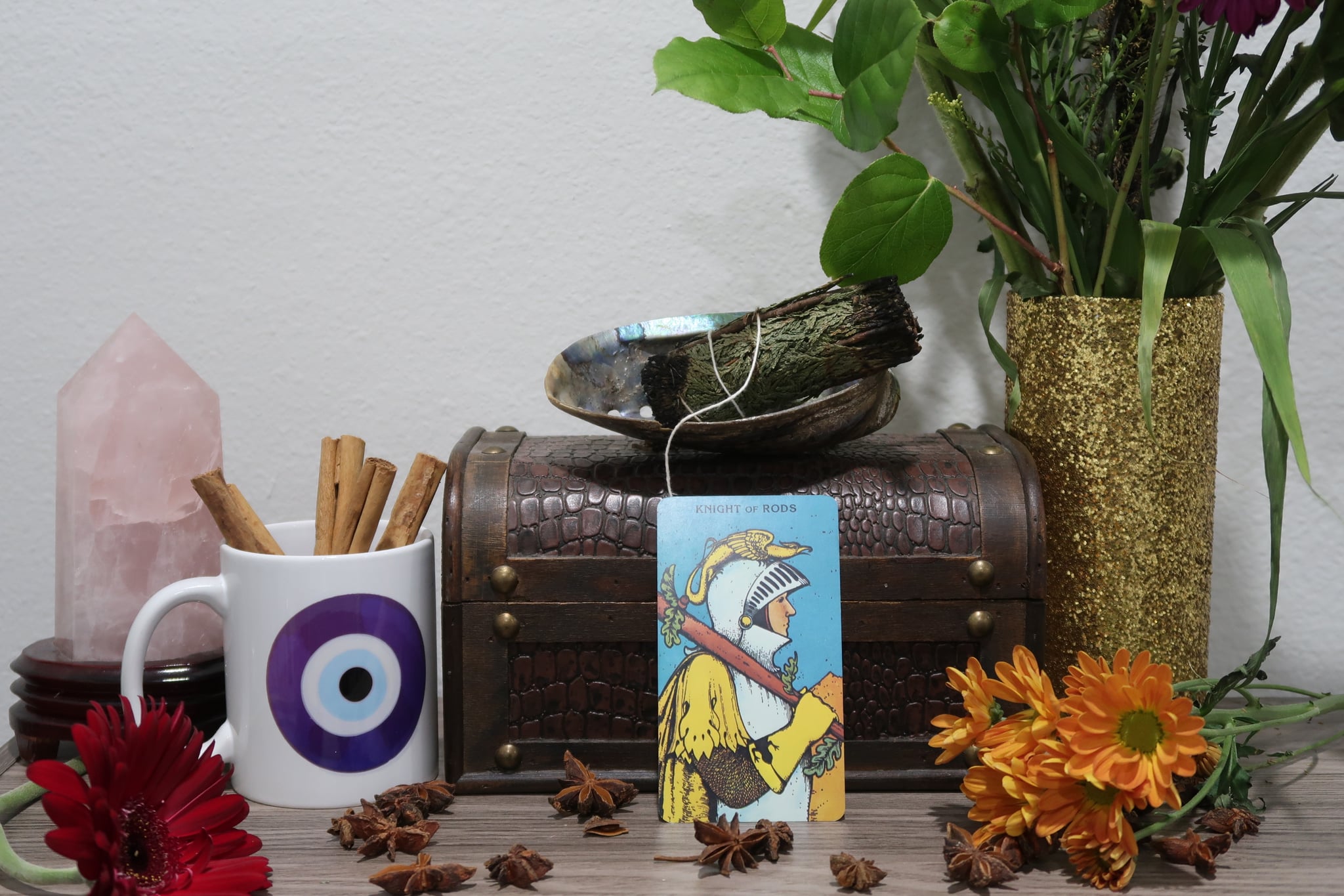 The Knight of Wands appears galloping on his horse wielding a wand partially in bloom . When this Knight arrives in your life, be prepared for someone to present new concepts or ideas that will be helpful and inspiring to you . When this card is representing you, you can expect for many changes to be coming your way .