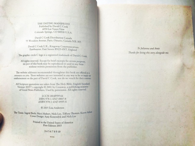 Product Description . . In The Dating Manifesto , Lisa Anderson, director of young adults for Focus on the Family, tells you what you really need to know about dating and the path to marriage, but probably aren't being told . Learn to break the cycle of dating dysfunction, honor marriage, marry well, and live intentionally while you wait .