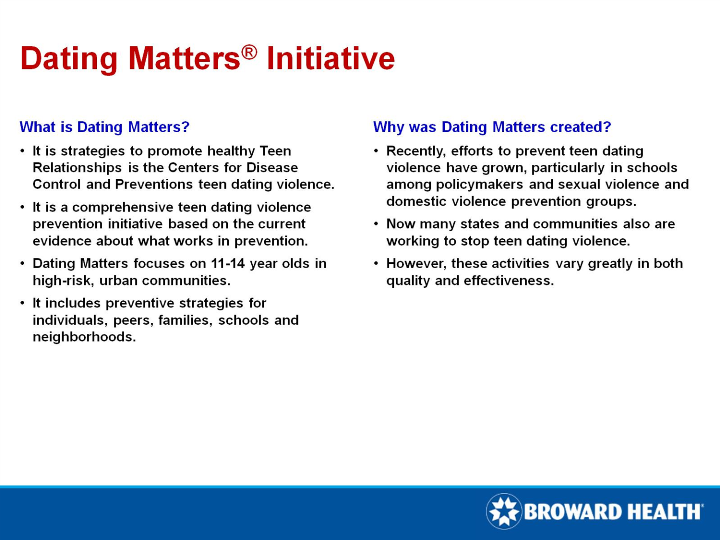Dating Matters ® : Strategies to Promote Healthy Teen Relationships is one way urban communities are working together with the Centers for Disease Control an . . .