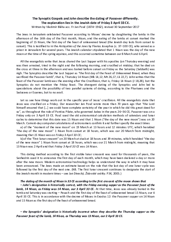 Chronology of Easter in John and the Synoptic Gospels . . .