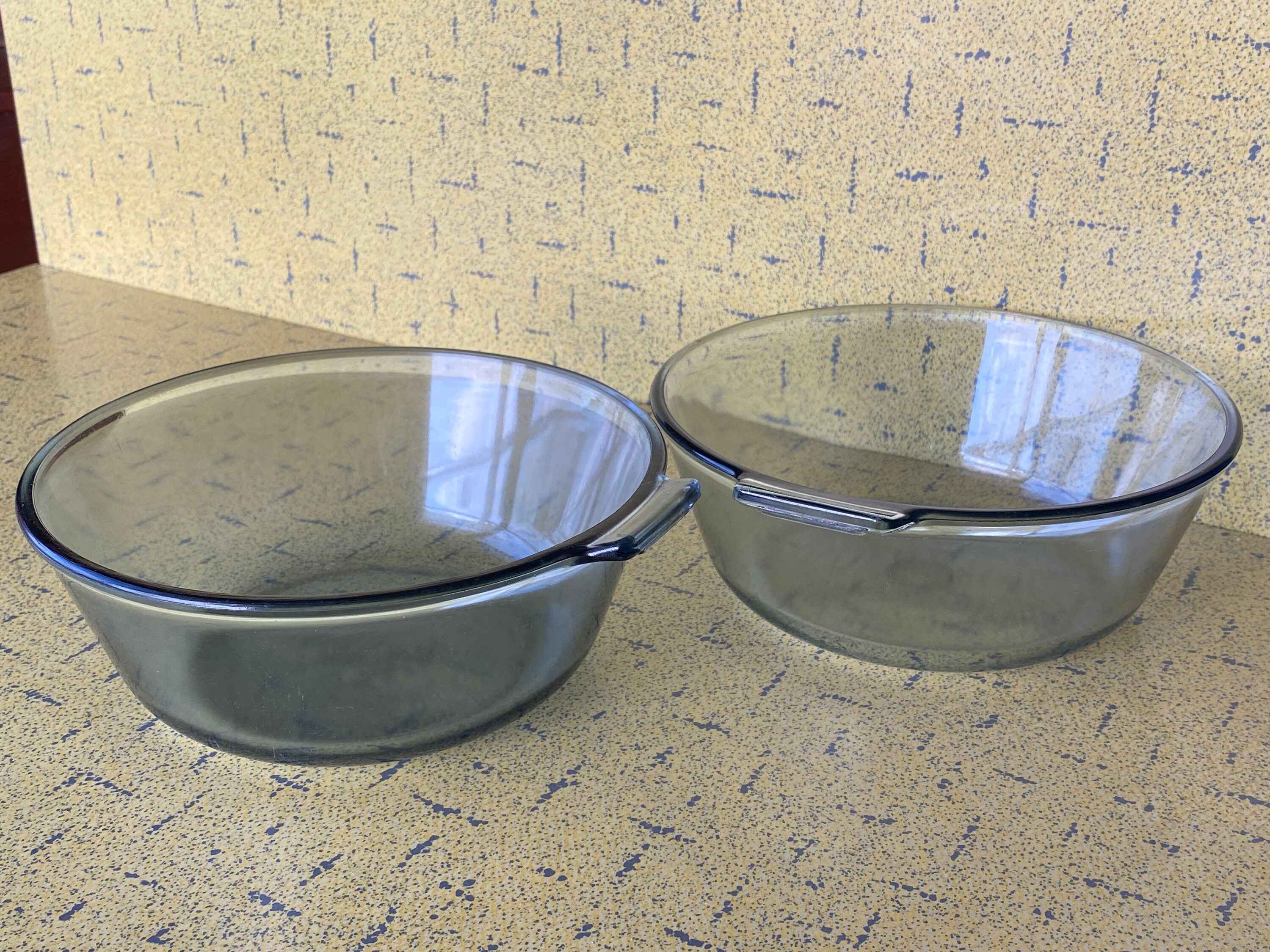 Clear tinted glassware lines, like Flameware , Fireside, and Vision, were also common and their individual hues can help identify and date them . World Kitchen now owns the Pyrex brand and has reintroduced some of the popular patterns, so it is important to verify you have the vintage version .