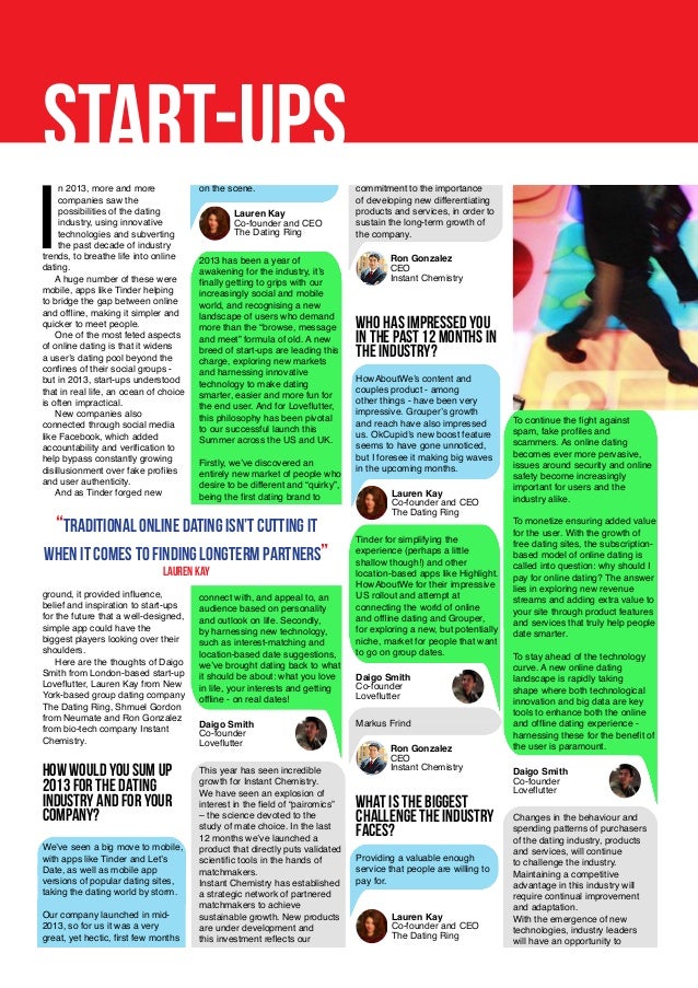 Lauren Kay . Founder of Dating Ring (YC W14) Dating Ring . Dating Ring is an online dating service that combines matchmaking and technology . When members sign up, they are assigned a personal matchmaker . Each week, matchmakers send their members a curated match .