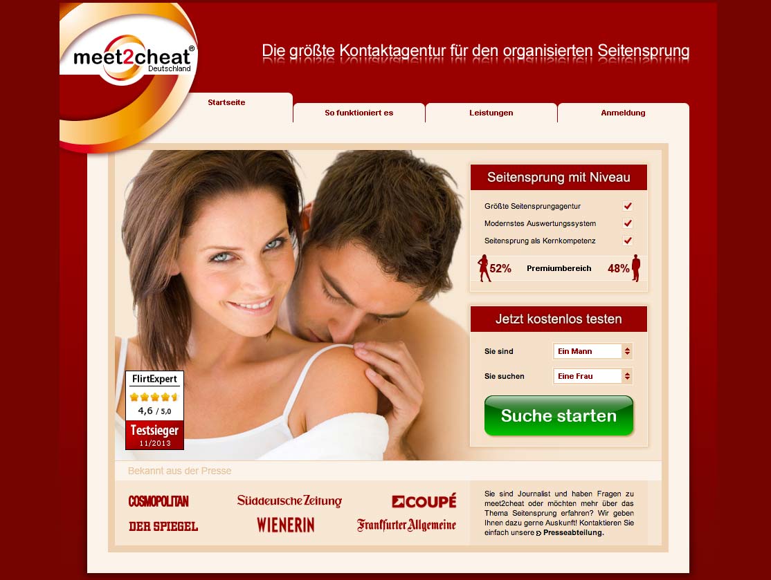 Durch unseren First Affair Dating Testbericht kannst du die Partner Vermittlungsbörse als Fake ausschließen. Denn handelt sich um eine Singlebörse die mit Leidenschaft und erotischen Abenteuer wirbt. Die Seitensprungvermittlung ist sehr einfach und benutzerfreundlich gehalten. Mit einer Mitgliederzahl von über 2 Millionen, werden zahlreiche allein Lebende und Paare die auf der Suche nach einem neuen Lebensmotto, Verliebtsein oder Lebengefährten sind, für dich bereit sein. Damit das erotische Abenteuer geheim bleibt, lautet der Grundsatz von First Affair deshalb auch:
