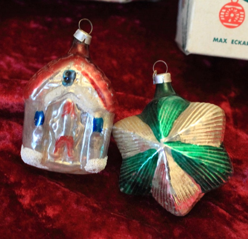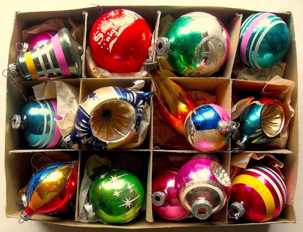 Boxes of Shiny Brite ornaments dating from circa 1920s-1950s can sell for over $200 . Single ornaments for over $50! Single ornaments for over $50! Check out some vintage ornaments