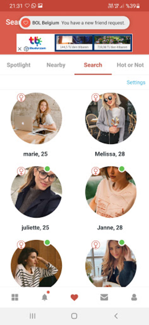 Belgium Dating Site - BOL . This app is one of the best online dating platforms in Belgium and expanding rapidly . if you are looking for friends or your love nearby . Belgique dating app is for you . You can meet and date with other belgian singles easily with BOL Belgium . This is an easy and friendly online dating app for people to find and enjoy . . .