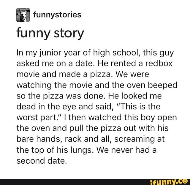 Going on a date can either be one of the best times of your life or the worst, so it's no wonder there are so many funny dating stories out there . You may as well share your disaster stories so perhaps other people can learn what not to do! Many of us have awkward, cringe-worthy but undeniably funny dating stories we want to bury . But of course, we've dug them out for your reading pleasure .
