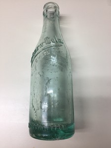 Straight-sided (S-S) Coke bottles with crown tops date about 1900-1919; colors were clear, aqua, green, blue, and amber with amber bottles in good condition typically bringing the highest prices . "Coca-Cola" embossed in script letters contained Coke and is more valuable, while the "Coca-Cola" embossed in block letters contained a flavored drink other than Coke so is less valuable .