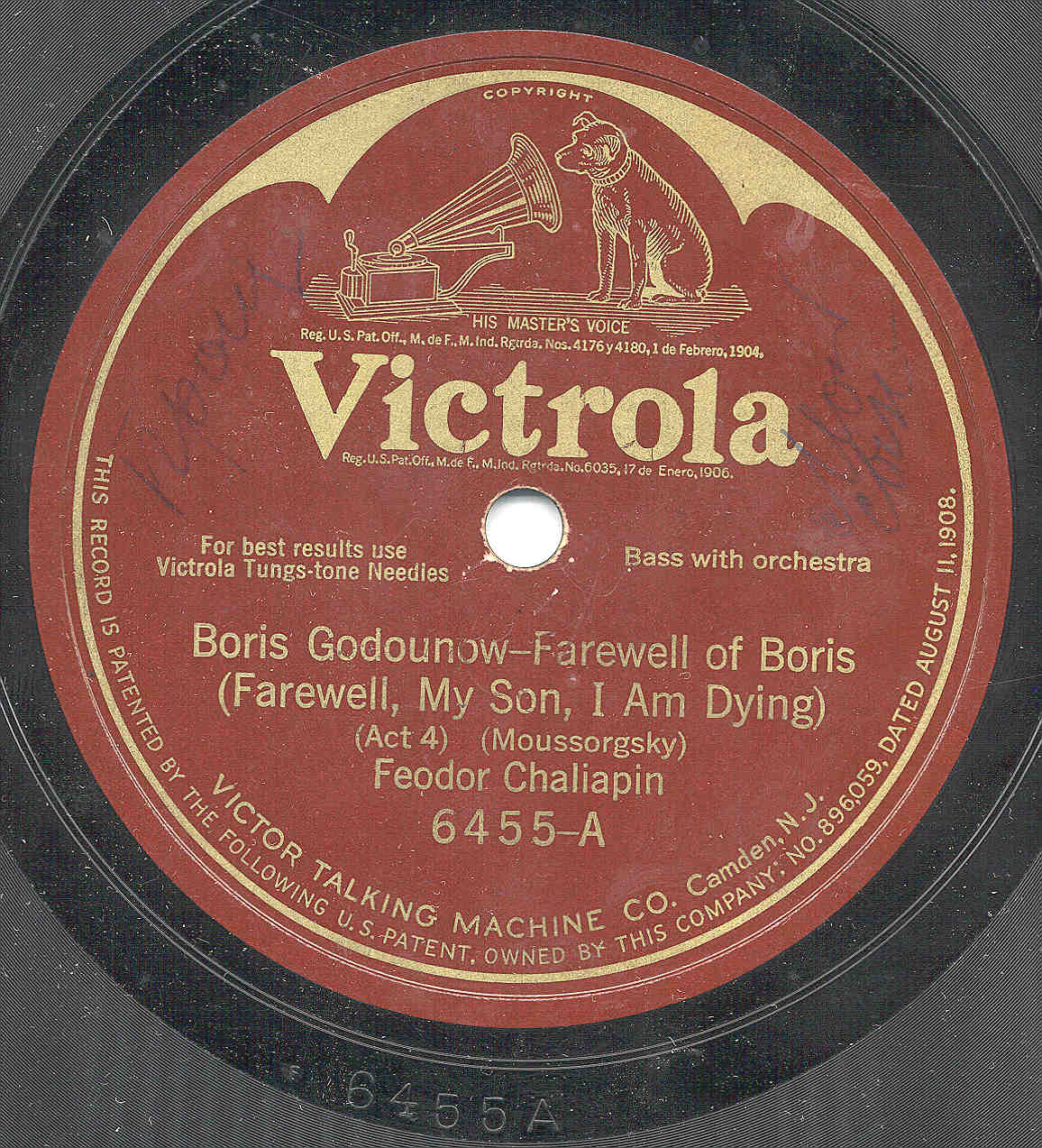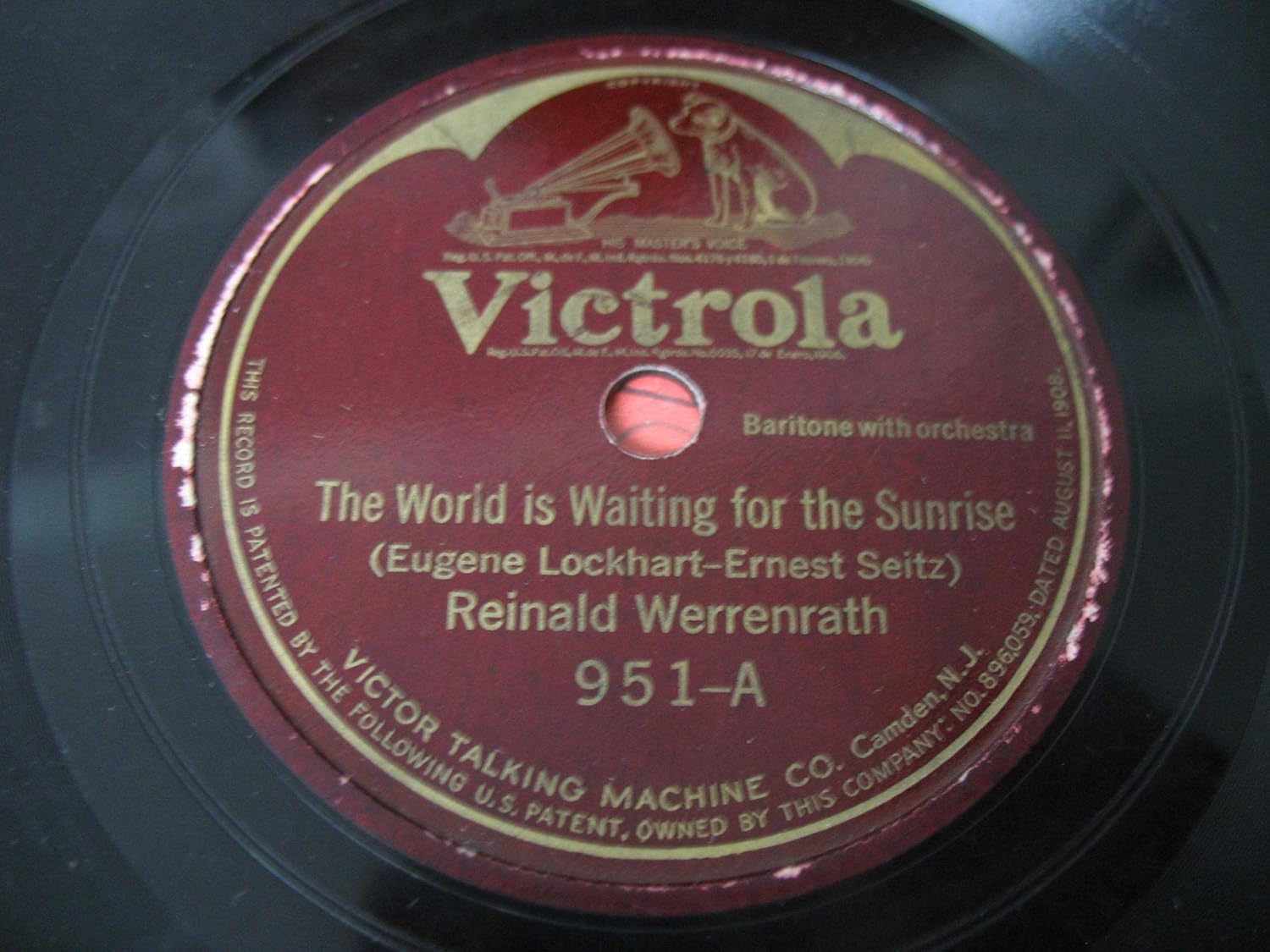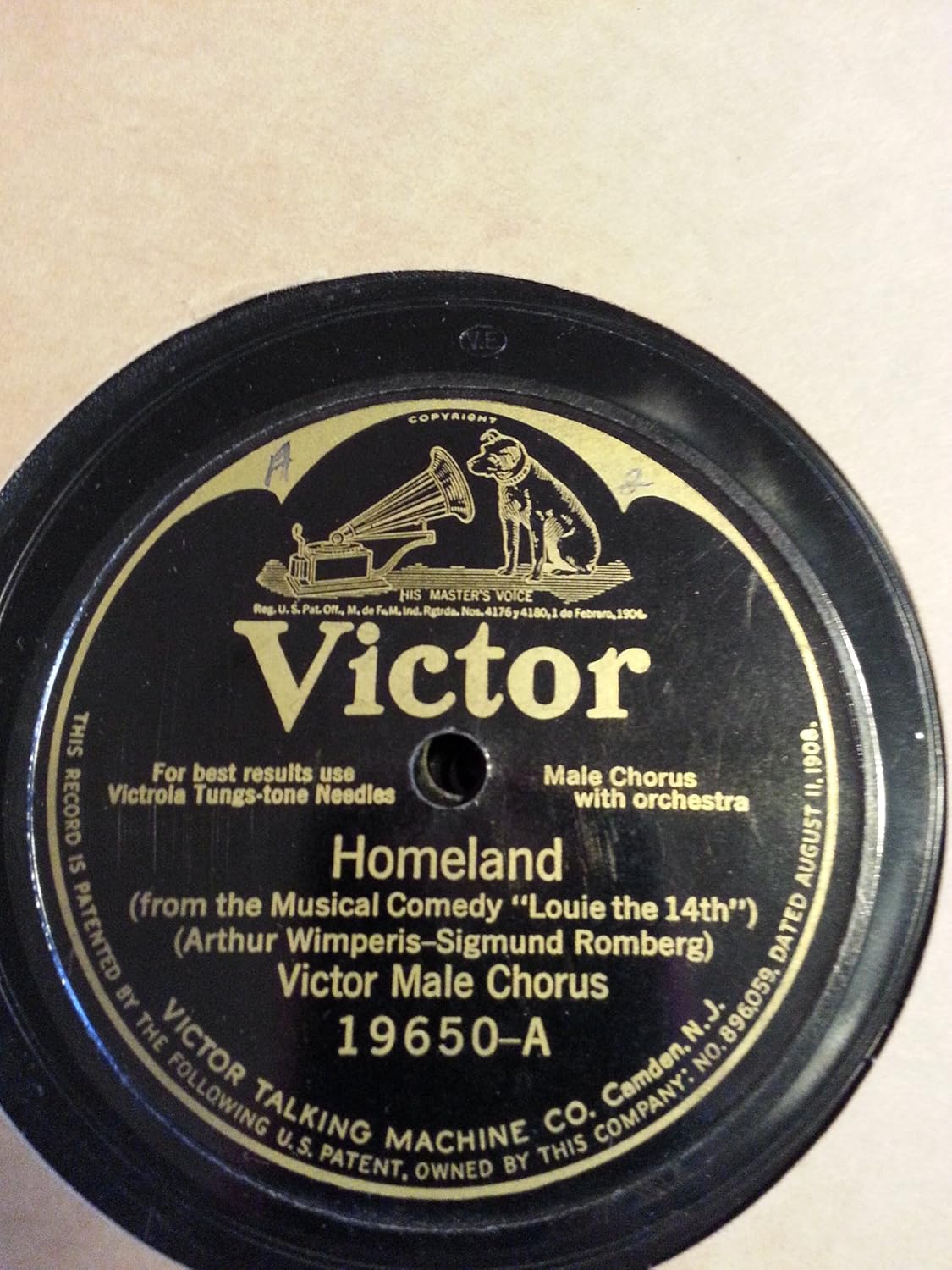 Antique Victrola Record Single-Sided Victor Talking Machine Co . Pat . August 1908 . $17 .50 . $3 .50 shipping . or Best Offer . 1908 Victor Vinyl Records , 36 total size 78 . The sound is 1908 .