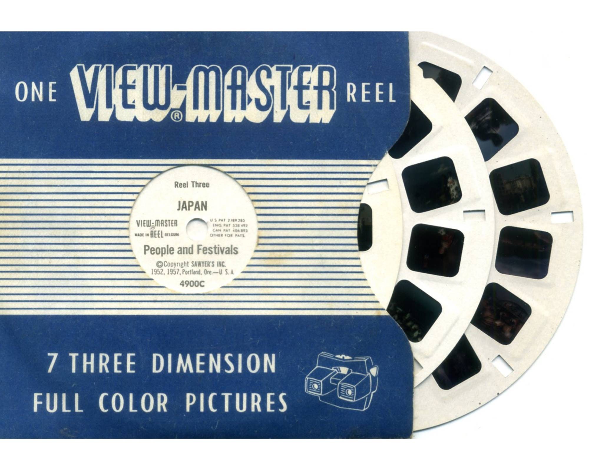 View-Master is the trademark name of a line of special-format stereoscopes and corresponding View-Master "reels", which are thin cardboard disks containing seven stereoscopic 3-D pairs of small transparent color photographs on film . It was originally manufactured and sold by Sawyer's . . The View-Master system was introduced in 1939, four years after the advent of Kodachrome color film made the . . .