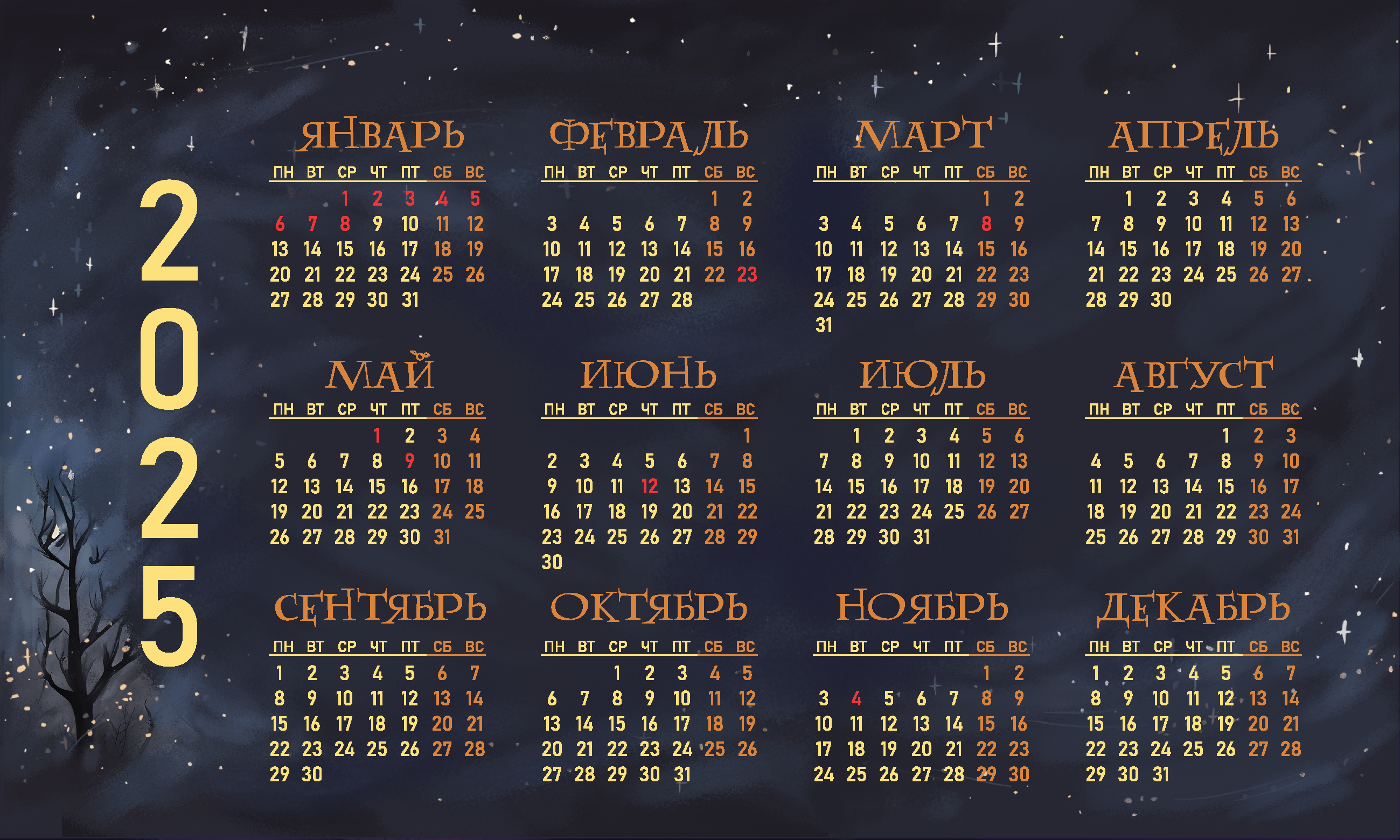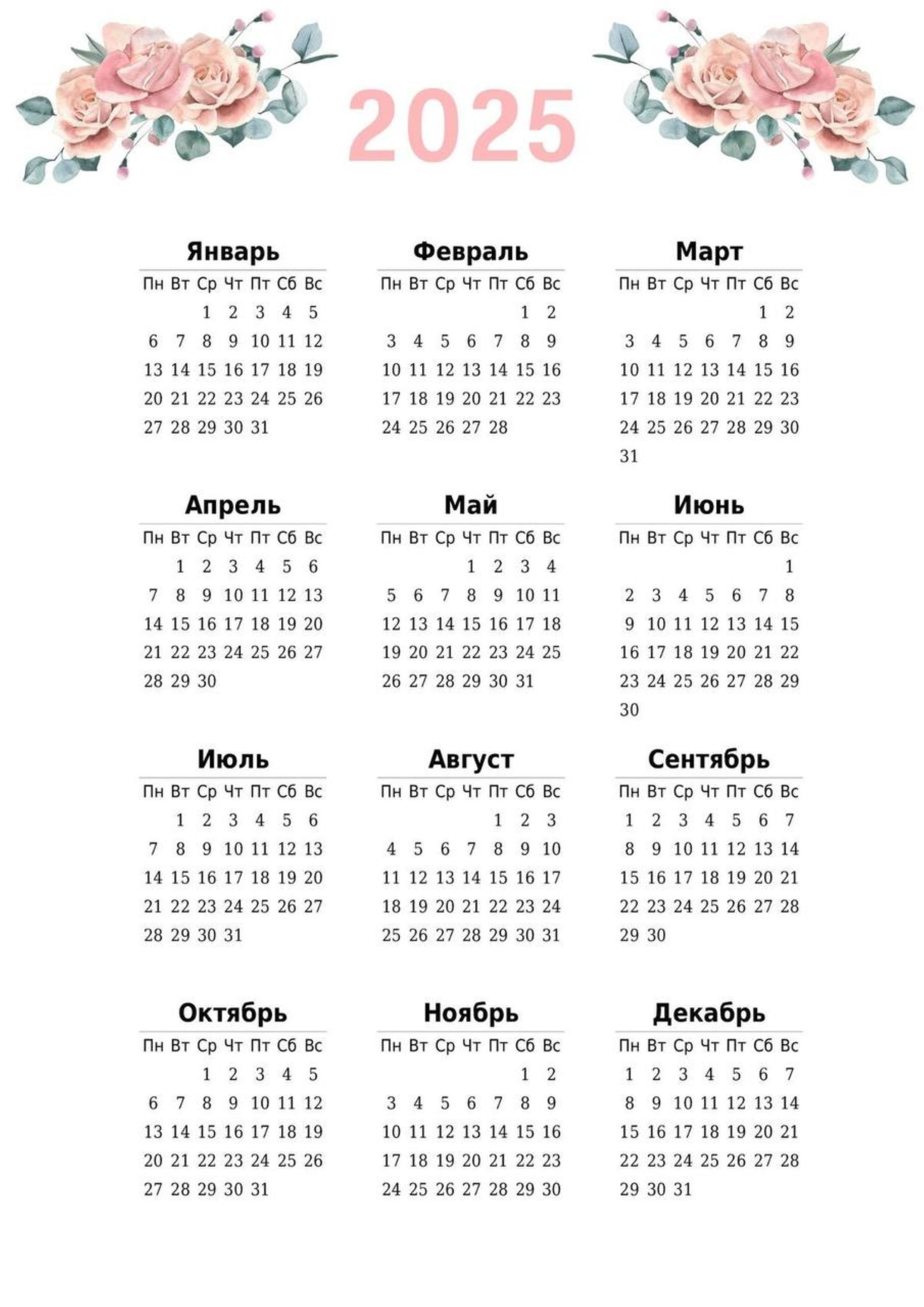 Даты календаря 2025