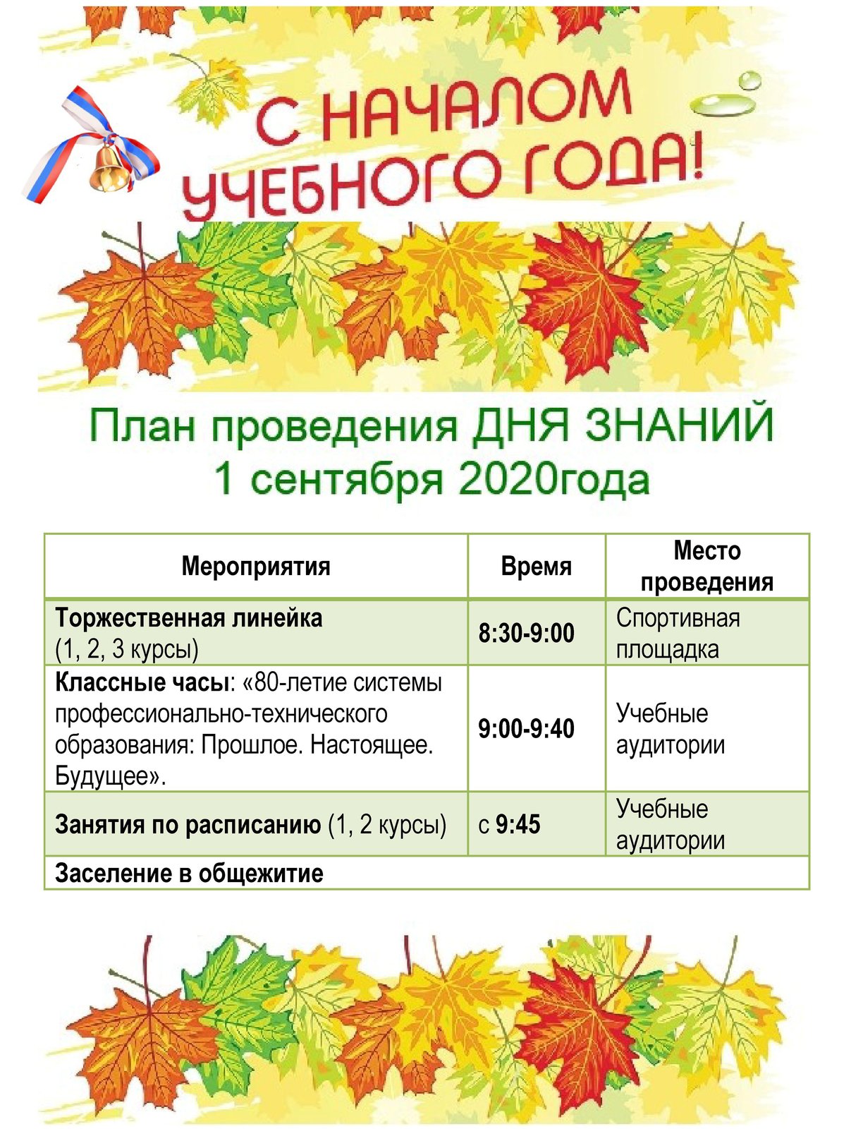 Даты в сентябре в школе