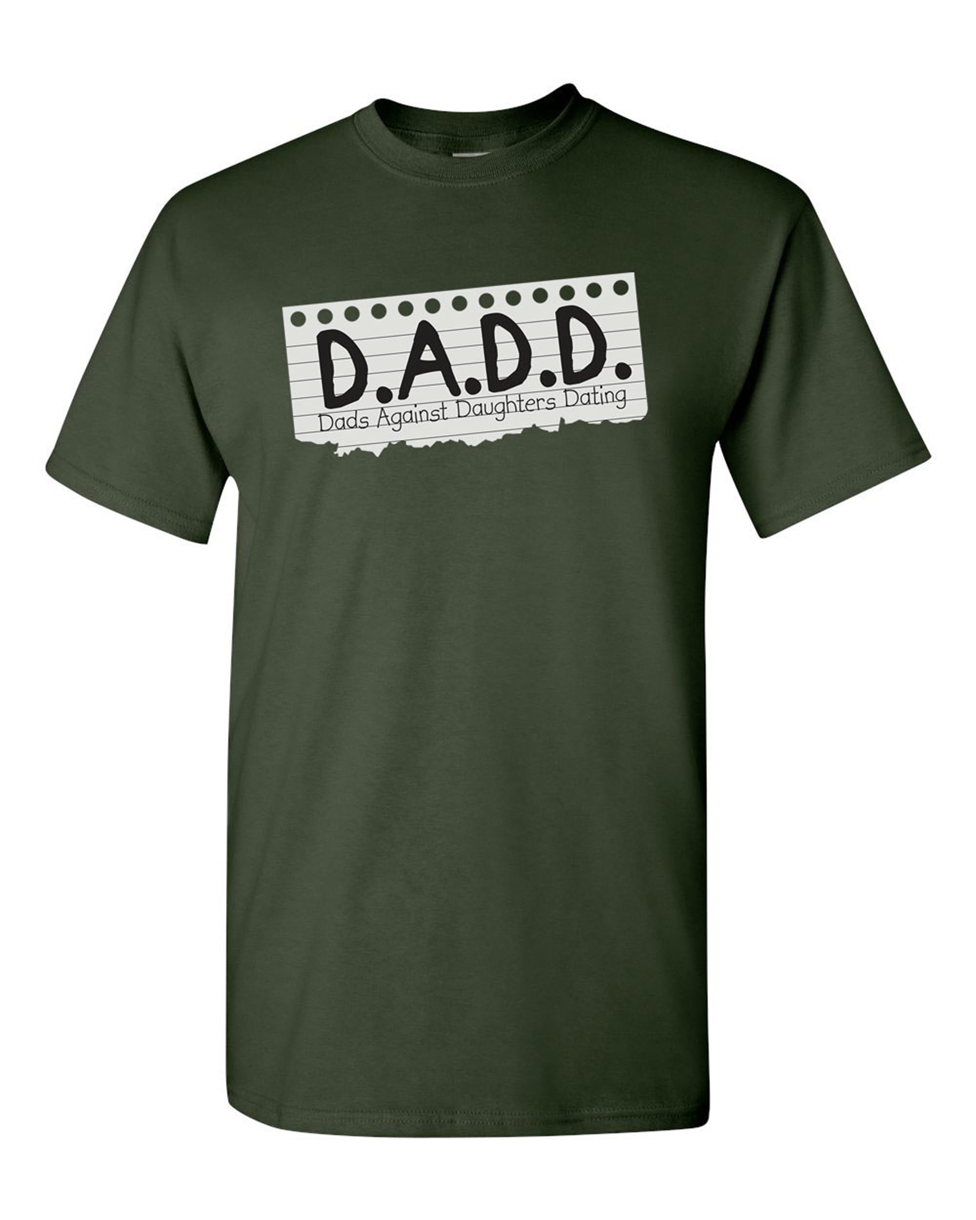 D .A .D .D . Dads Against Daughters Dating T-Shirt . The D .A .R .E . parody T-Shirt that every dad should own . T-Shirts are available in two high quality styles . Deluxe: made with 100% ring-spun combed cotton . Luxury: made with a super soft vintage style 52/48 blend of ring-spun cotton & polyester .